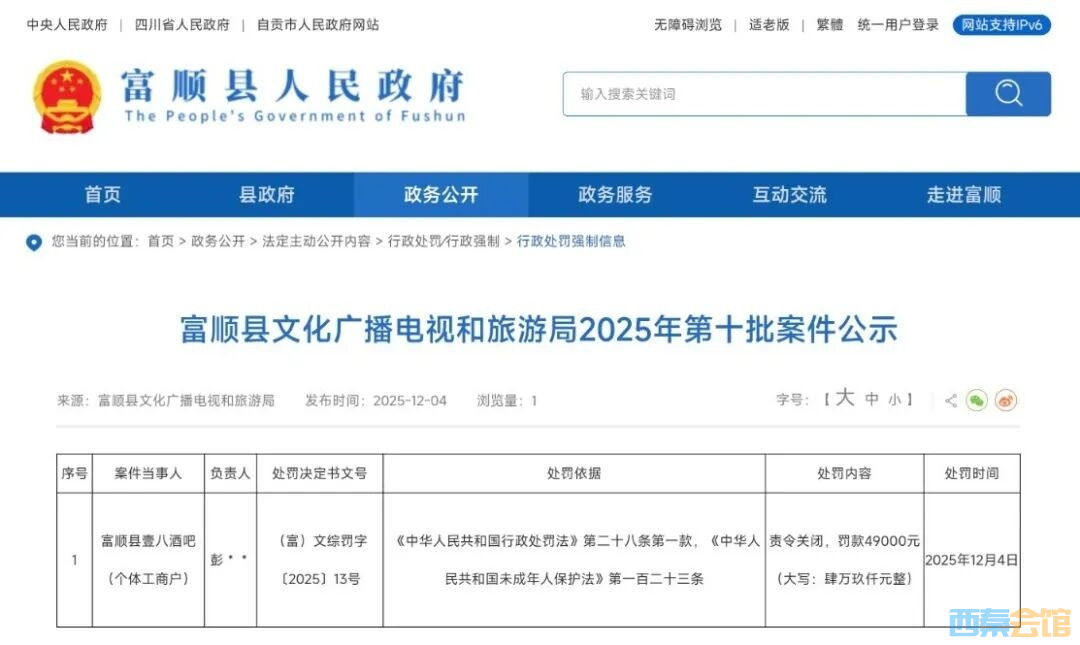 责令关闭!罚款4.9万元!富顺一酒吧涉及未成年人……