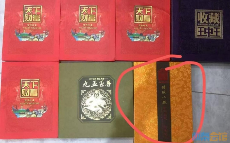 两件“宝贝”,一件号称“钞王之王”,购买价2988元。另一件名为“错版文物之王”,2899元。在约A4纸大小的包装盒上,用烫金的字体印着品名。