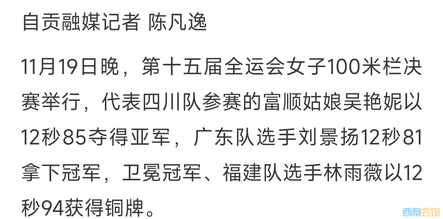 12秒85!自贡姑娘吴艳妮获100栏亚军