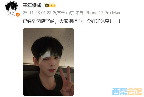 23日,王年将成公开眼部撕裂性伤口及肿胀淤紫照片,配文“已到酒店,大家别担心,会好好休息。”