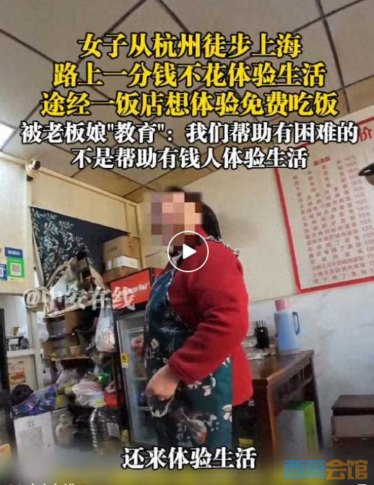 女子从杭州徒步到上海,想免费吃饭遭拒,饭店老板:我们不帮有钱..