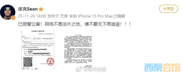 张亮本人也发文称:“已报警立案!网络不是法外之地,请不要无下限造谣!!!”