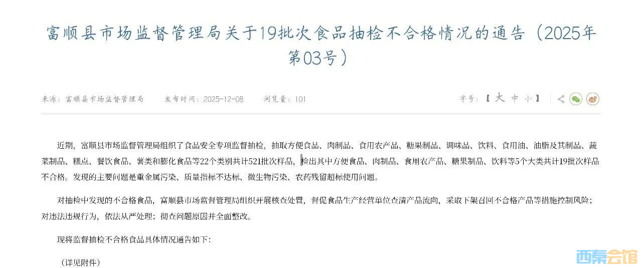 富顺19批次食品抽检不合格