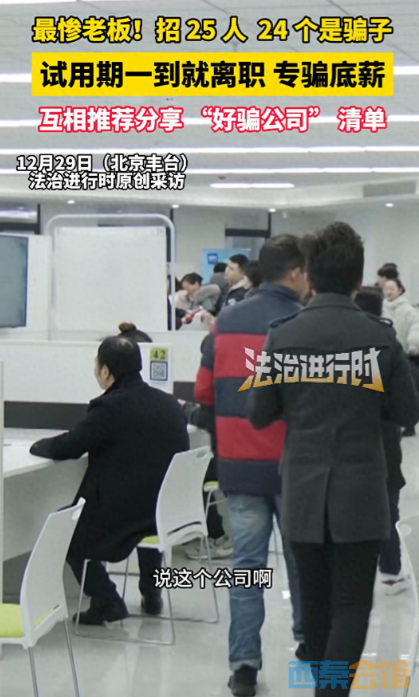 12月29日,北京一家公司的老板表示:公司招聘的25个人里,有24个都是“搞诈骗的”他们相互之间会推荐“好骗公司”清单