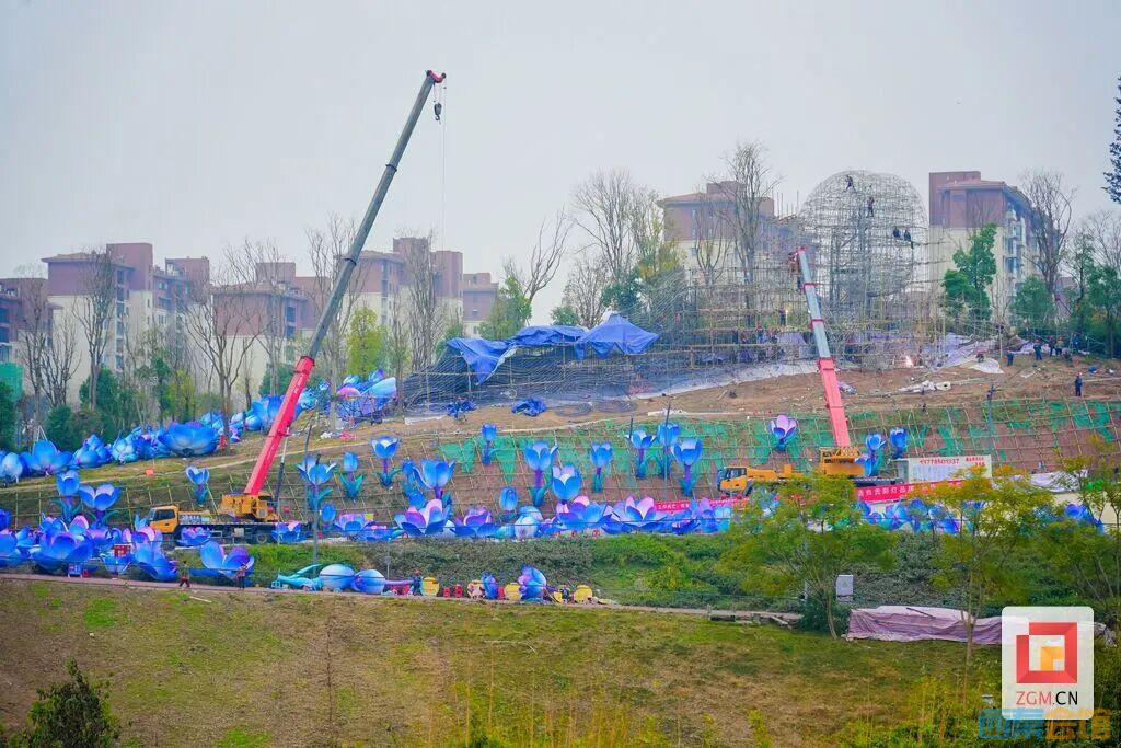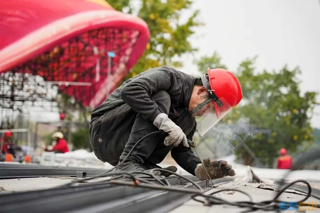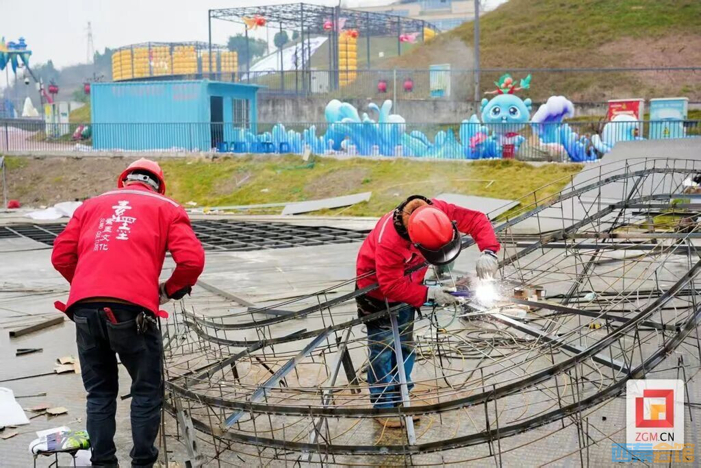 园区内,已有17家灯企入场施工,近千名造型工、电工、焊工在25个点位同步作业。“项目按天推进打卡,目前已完成约总进度的63%。”工程负责人张华说。