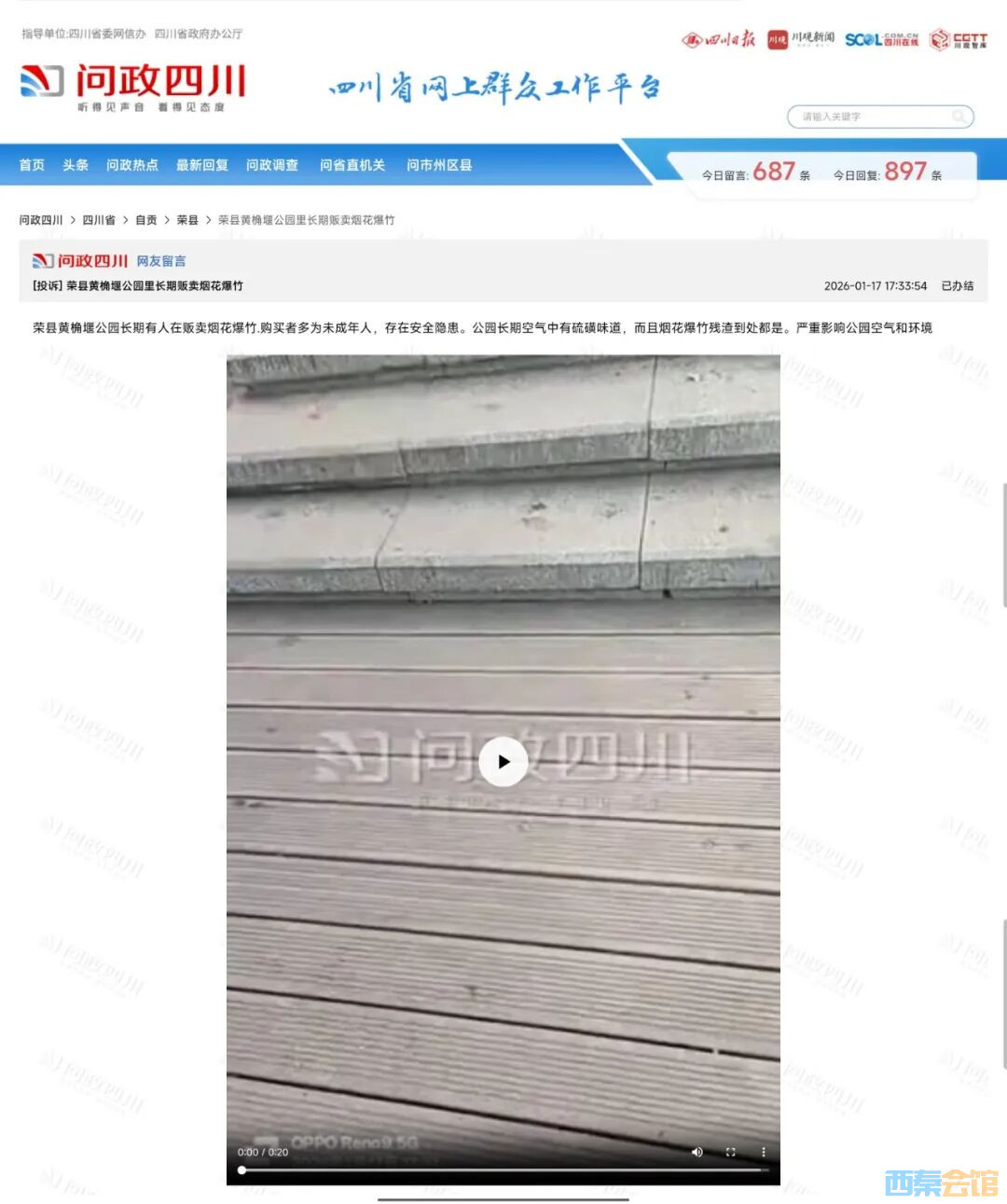 您好!您在问政四川留言反映荣县黄桷堰公园有人售卖烟花爆竹的问题,现由自贡市荣县应急管理局将有关情况回复如下: