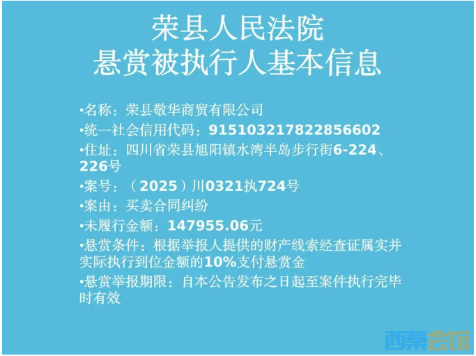 悬赏 | 荣县人民法院执行悬赏公告(2026年第一期)