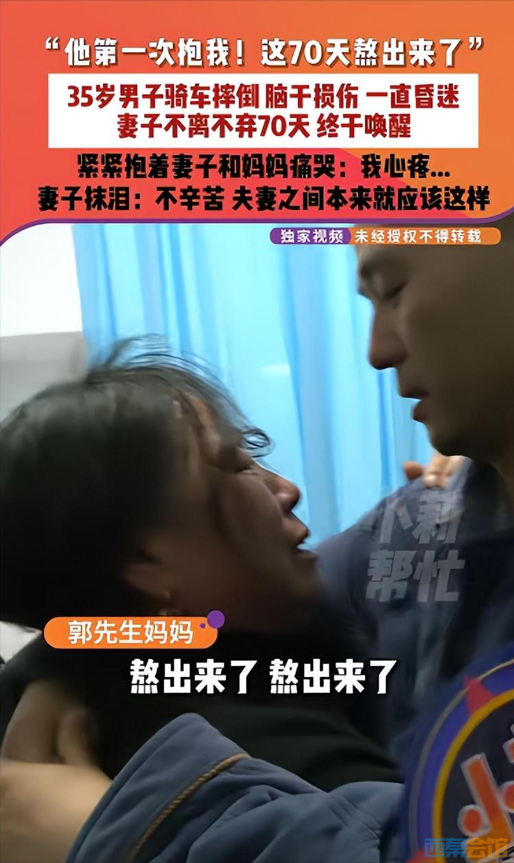 功夫不负有心人,在肖女士的日夜守候下,郭先生终于有了意识,慢慢认出了妻子和妈妈,还能微弱地叫出“妈妈”,伸手拥抱肖女士。