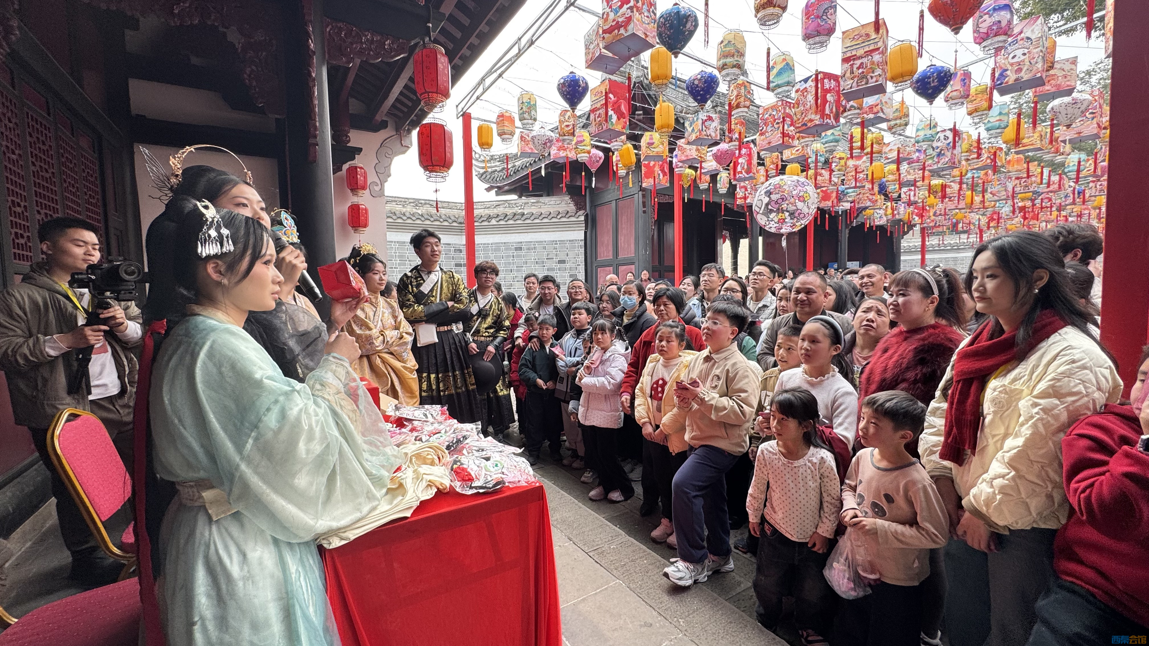 下午,文庙正街与神龟山老县衙新春氛围持续升温。新春古装NPC大型互动活动热闹开启,市民游客与古装人物趣味互动、参与游戏闯关,赢取“银票”兑换文创拍卖资格。特色文创产品拍卖现场人声鼎沸,大家踊跃举牌、争相竞拍,在趣味互动中感受传统文化与创意文旅的碰撞,现场欢声笑语不断,年味与趣味双向拉满。文庙正街红灯笼串起街巷,古建与新春装饰相得益彰;神龟山老县衙装扮一新,喜庆氛围浓厚,处处洋溢着团圆祥和的节日气息。