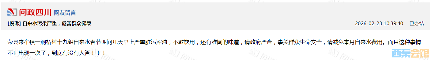 荣县自来水污染严重,危害群众健康?官方回复来了!