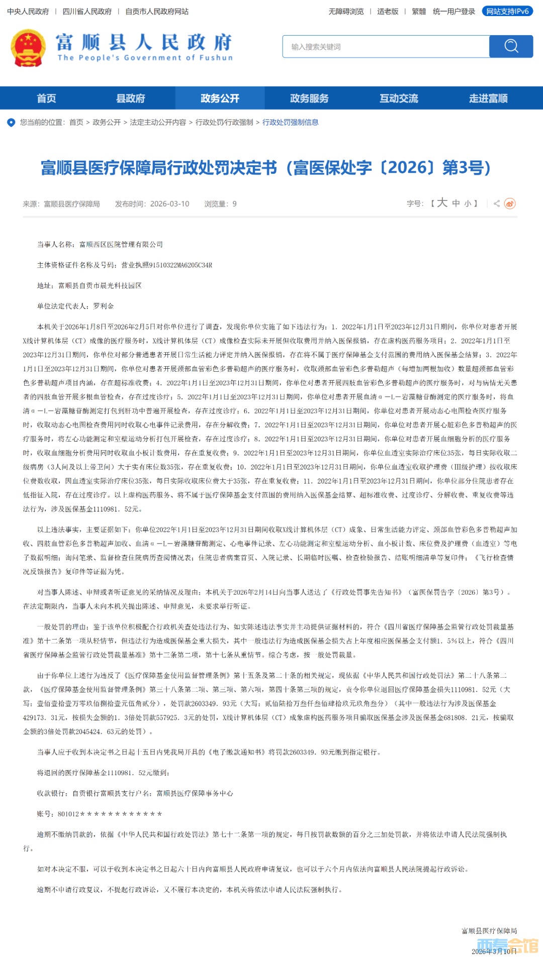 富顺县医疗保障局行政处罚决定书