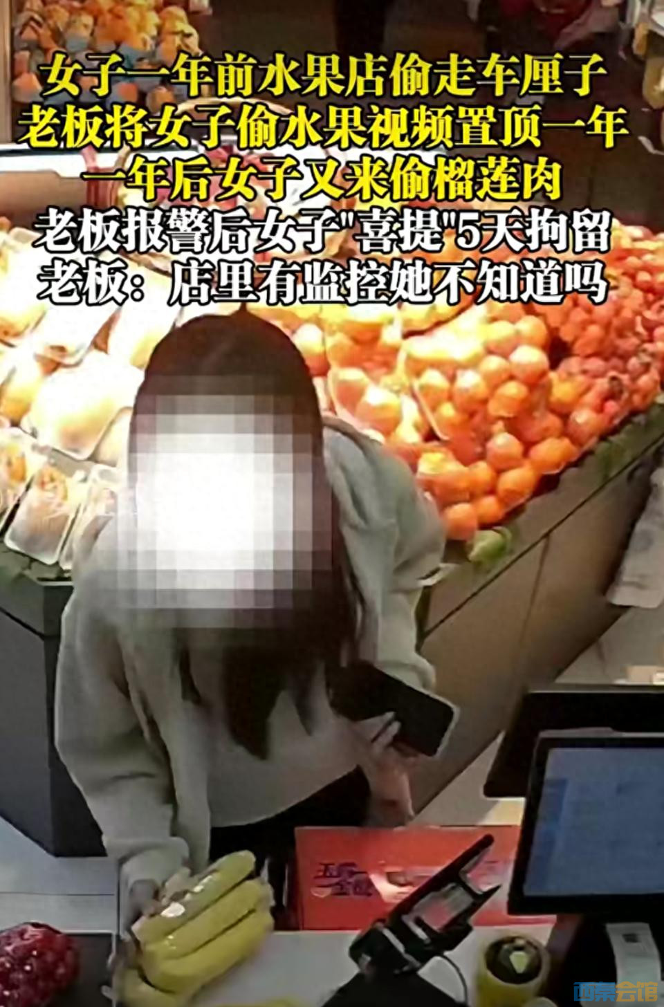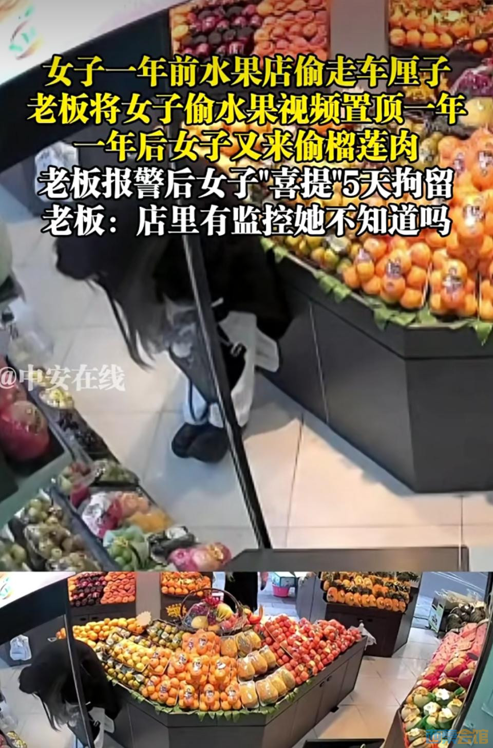 女子在武汉一水果店偷车厘子,老板将其盗窃视频置顶1年,没想到1年后她又来偷榴莲...